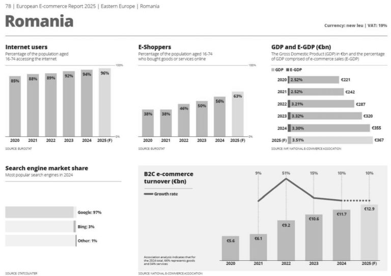 Comerțul electronic din România este așteptat să atingă 3,5% din PIB în 2025, consolidându-și poziția în Top 10 state membre UE ca E-GDP, potrivit European E-Commerce Report 2025. România ocupă locul 9 la nivel european și locul 3 în Europa Centrală și de Est, după Polonia și Cehia. „Suntem în Top 10 și avem șansa să valorificăm acest potențial prin …
